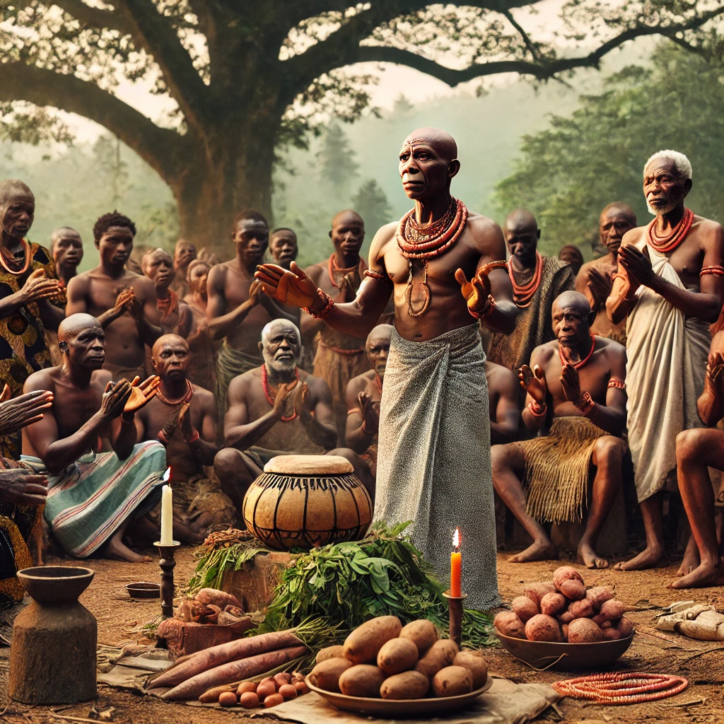 The Ohafia people deeply respect their ancestors. They believe that these ancestors continue to protect the family, guiding and blessing them. In the past, families held regular ceremonies to honor the ancestors, making sacrifices and saying prayers led by the elders of the community. This was an important part of Ohafia’s spiritual life, giving people a connection to their roots.